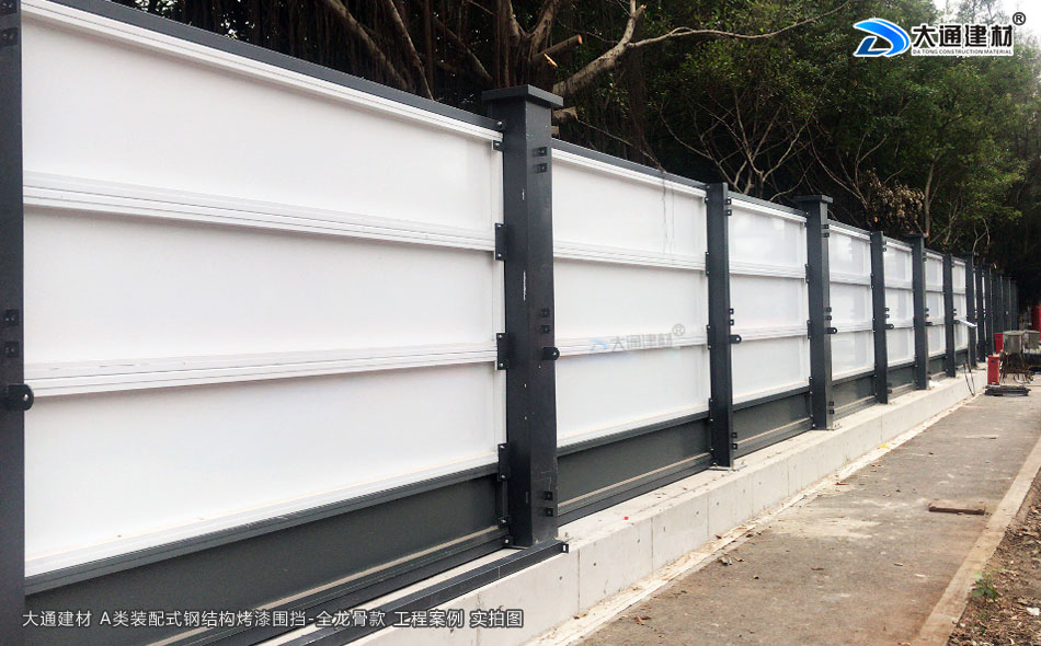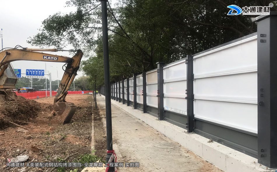 深圳市大通建材圍擋烤漆全龍骨A款是一款施工用防護(hù)隔離圍擋。大通建材圍擋A款采用鋼結(jié)構(gòu)設(shè)計,安裝穩(wěn)固,抗風(fēng)力強力;裝配式,拆裝與運輸都很便捷;雙面烤漆鋼板,表面十分光滑,色調(diào)溫和美觀;不易銹蝕,可以很好地抵御強酸強堿的侵蝕,可循環(huán)使用。
