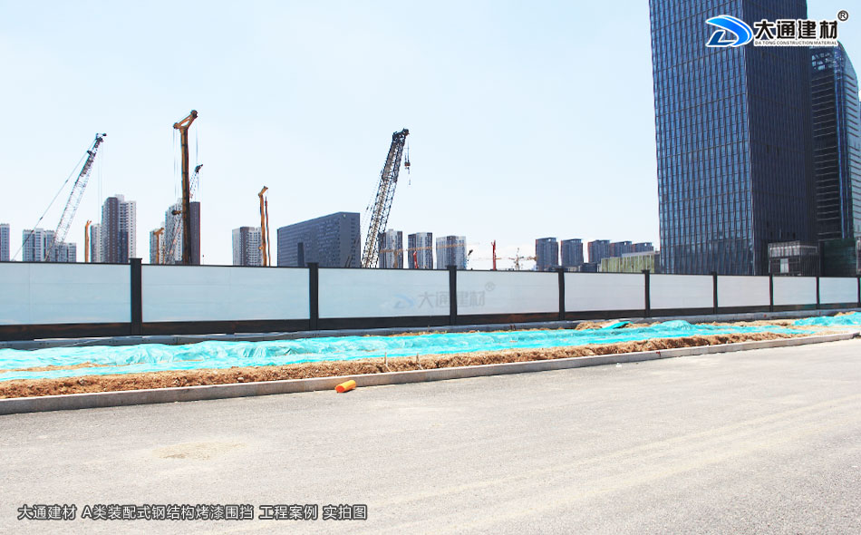 此項目工程施工地圍擋使用的是大通建材鋼結構圍擋全龍骨A款,裝配式鋼結構烤漆墻板不易生銹、不易變色、不易脫落、美觀平整、抗腐蝕 、耐久性強,每塊圍擋墻板均有方通龍骨加固,降低重量,保證穩固的前提下,提升性價比,使搬運、安裝更輕便。