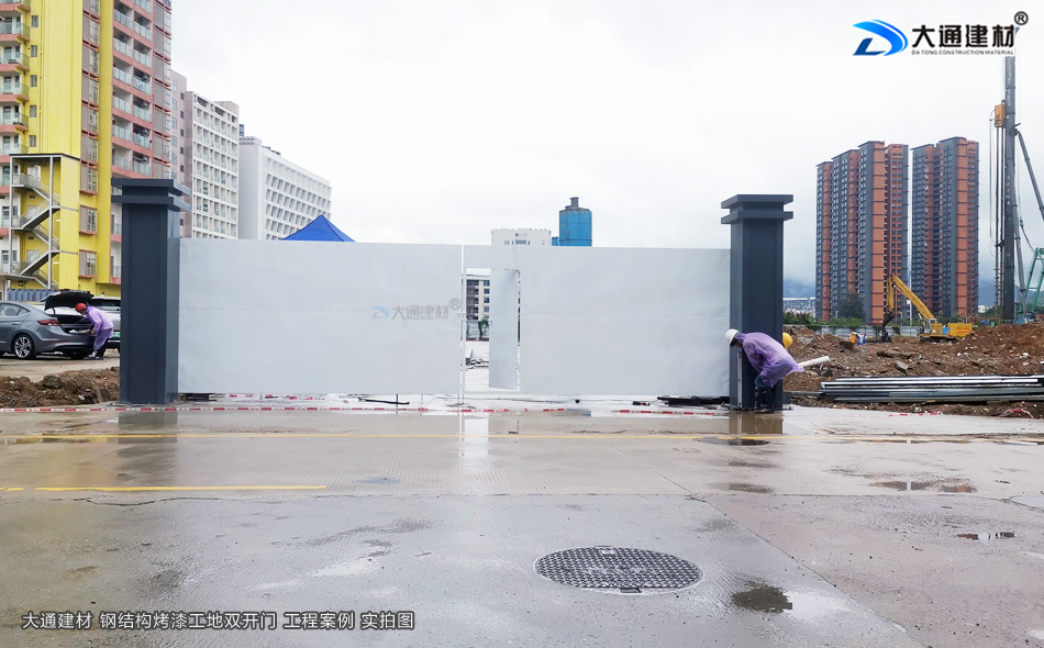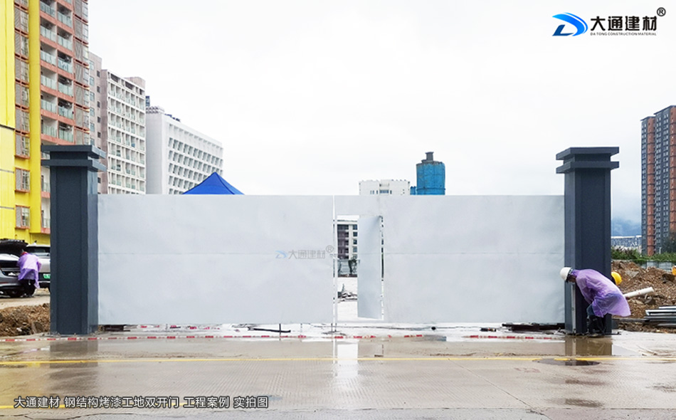 大通建材烤漆鋼結(jié)構(gòu)款工地雙開門-先安裝大門立柱