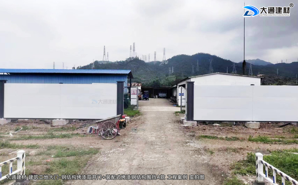 建筑工地大門-施工大門-鋼結(jié)構(gòu)烤漆雙開門+裝配式鋼結(jié)構(gòu)烤漆圍擋A款應(yīng)于到深圳市建筑工程項(xiàng)目