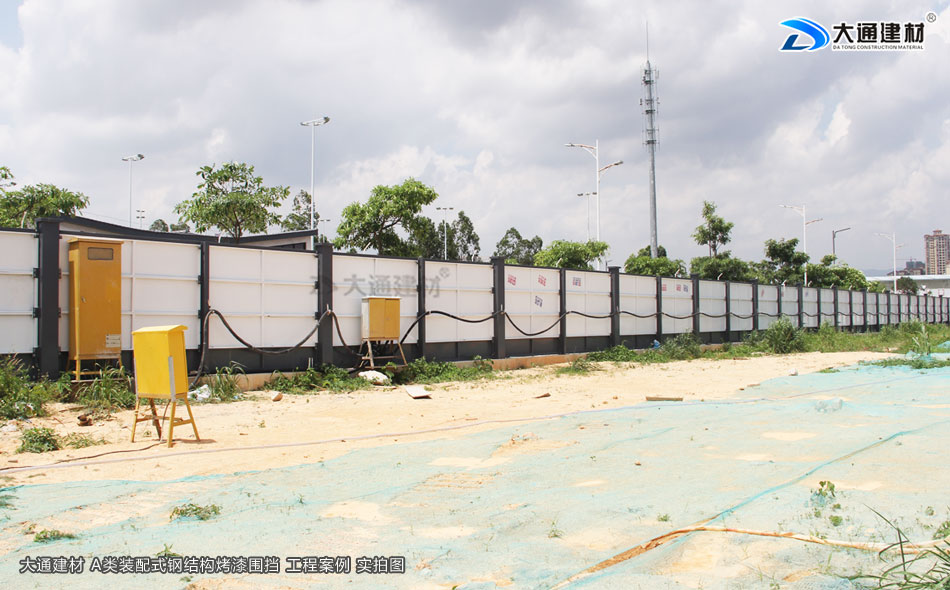 東莞東坑鎮(zhèn)工地臨時施工工程選用的是深圳市大通建材有限公司生產(chǎn)批發(fā)的鋼結(jié)構(gòu)圍擋a類2.5米高半龍骨款 來對施工工地進行隔離防護