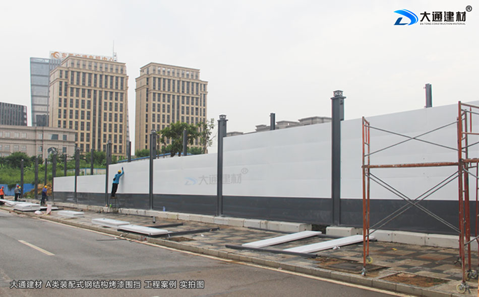 上述圖片展示的是 大通建材裝配式鋼結構圍擋烤漆A款定制4米高+圍擋基礎塊 實拍案例圖