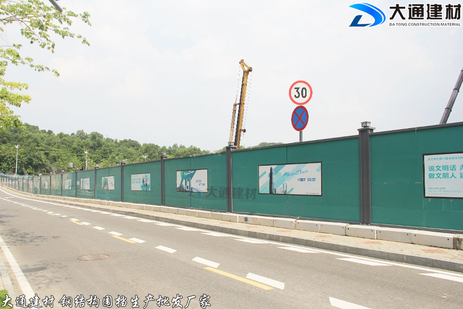 深圳市大通建材推出新型圍擋-綠色烤漆鋼結構圍擋A款,其中的綠色烤漆墻面是一種看起來非常舒服、很有活力的顏色,簡潔大方、美觀環保 抗風力強、安全穩固,適合各種施工工程選用。
