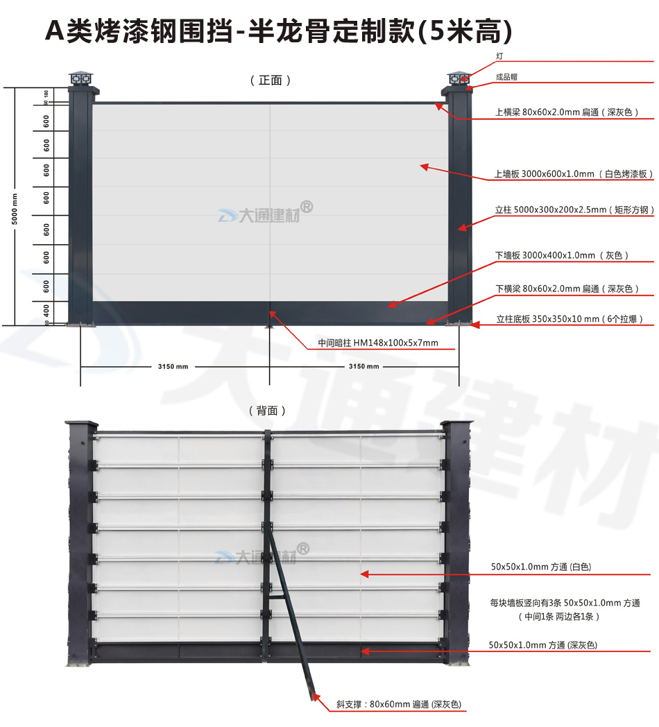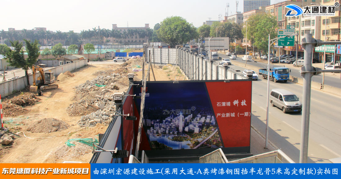 深圳大通建材生產的A類烤漆鋼圍擋半龍骨5米高定制款適用于各種市政工程建設施工、房地產項目建設施工、地鐵修建項目施工、管網改造、小區改造、城市建設、道路修建施工等工程使用
