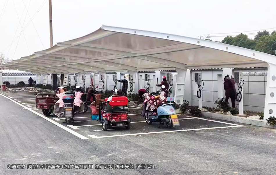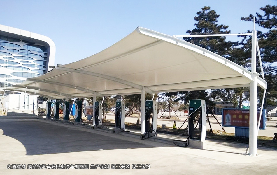 深圳大通建材小汽車充電樁鋼膜結構停車棚雨棚是指一種采用鋼結構和膜材料相結合的停車設施。它以其獨特的造型、輕盈的結構和實用的功能,受到了廣泛的關注和應用。在城市道路、商業廣場、住宅小區等場所,都可以看到膜結構停車棚雨棚的身影。深圳市大通建材是各類鋼膜結構停車棚生產源頭廠家 專業團隊 可按實際需求定制化生產 可包工包料 更多詳情請致電 13826562448 梁先生