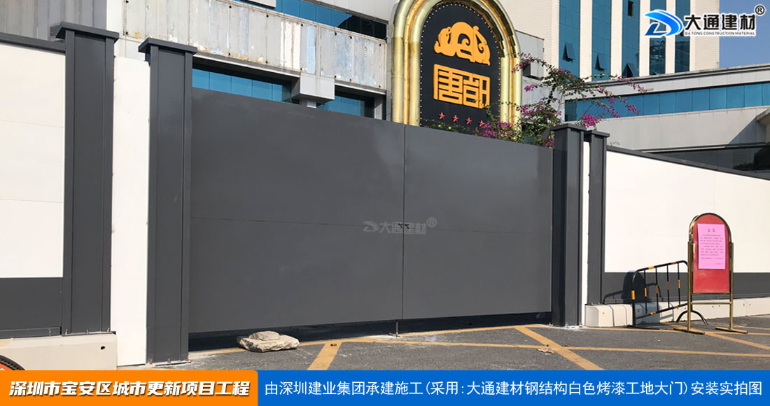 深圳市大通建材專業(yè)鋼結(jié)構(gòu)工地烤漆雙開門生產(chǎn)批發(fā)源頭廠家,在東莞設(shè)有大型工地鋼結(jié)構(gòu)烤漆大門生產(chǎn)基地,貨源充足,由廠家直接銷售價格便宜;一龍條服務(wù),能夠?qū)崿F(xiàn)客戶下單后馬上發(fā)貨安裝,客戶還可根據(jù)實際需求進(jìn)行定制化生產(chǎn)。了解更多“大通建材工地大門”規(guī)格與價格詳情 請咨詢 13826562448 梁先生