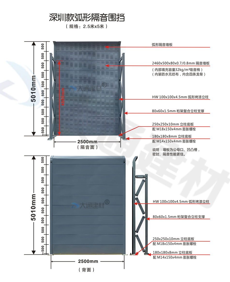 深圳市大通建材有限公司為各項目工程單位提供 各類隔音屏圍擋、鐵路隔音圍擋、公路隔音圍擋、高速隔音圍擋、高架橋隔音圍擋的生產定制、批發零售、配送安裝等包工包料的服務,具體詳情 請致電13826562448或微信dt13826562448梁先生
